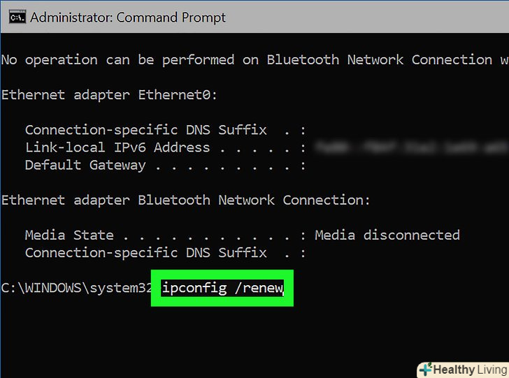 Введітьipconfig /renew натисніть ↵ Enter. пристрою буде присвоєно нову IP-адресу.