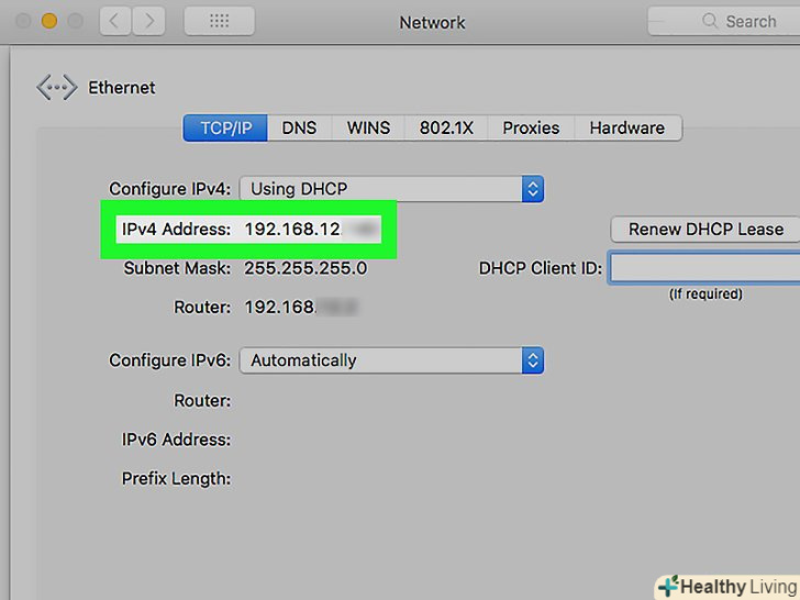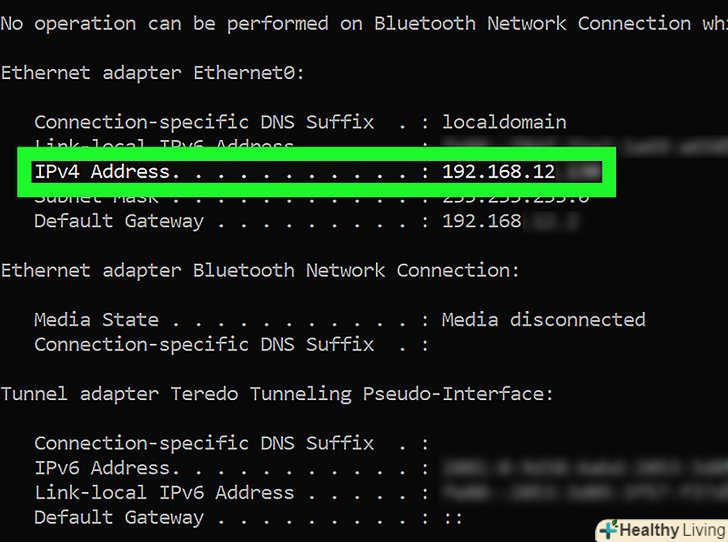 Визначте нову IP-адресу. він вказаний в рядку «IPv4-адреса". Якщо нова IP-адреса відрізняється від попередньої, IP-адреса була змінена.- Описаний метод можна застосувати тільки в тому випадку, коли комп'ютер підключений до локальної Ethernet-мережі. За допомогою цього методу не можна змінити публічну IP-адресу.
