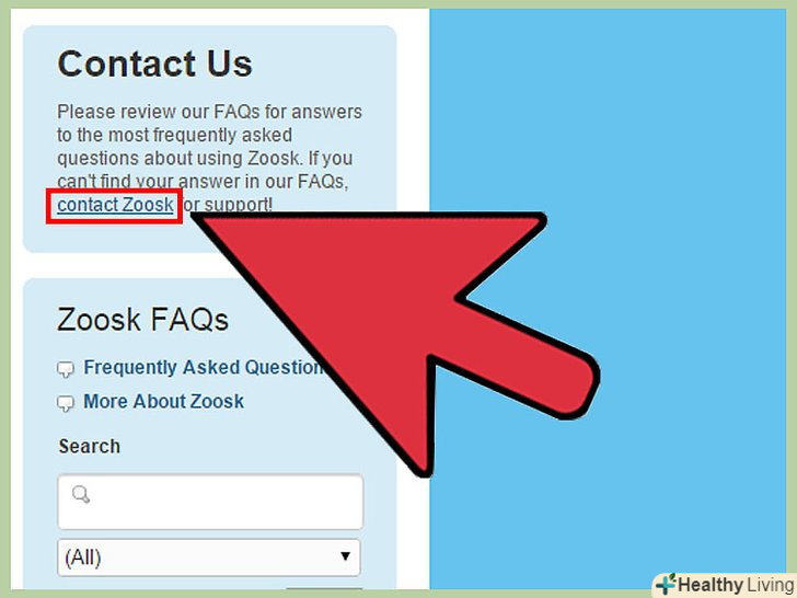 Відкрийте сторінку служби підтримки Zoosk.ви можете написати їм по електронній пошті запит на видалення. Немає ніякої гарантії, що Zoosk видалить обліковий запис; спробуйте проявити наполегливість, це не зашкодить.- Посилання на сторінку служби підтримки знаходиться внизу головної сторінки.