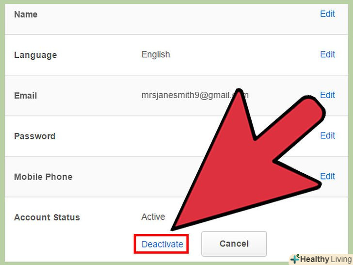 Видаліть або змініть всю інформацію в своєму профілі.оскільки ви можете тільки відключити свій обліковий запис, рекомендується змінити всю інформацію про себе, щоб вона ніяк не вказувала на вас. Це допоможе захистити особисті дані. Приберіть ім'я, місце проживання, фотографію та іншу особисту інформацію[1].
