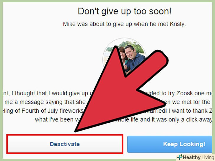 Увійдіть до свого облікового запису Zoosk. для деактивації необхідно увійти під своїм ім'ям. Остаточно видалити профіль на сайті Zoosk не можна. Спочатку потрібно відключити обліковий запис, а потім звернутися в службу підтримки.