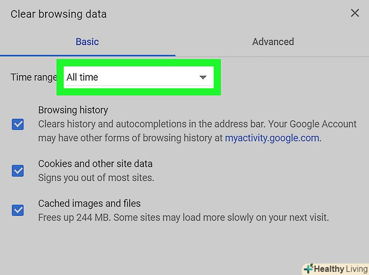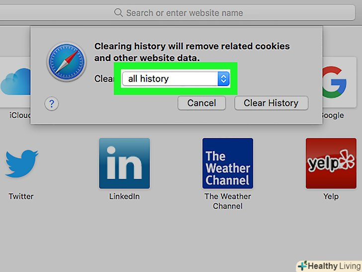 4. Виберіть часовий інтервал.для цього відкрийте меню "Очистити:" посередині спливаючого вікна, а потім виберіть часовий інтервал (наприклад, «Вся історія»).