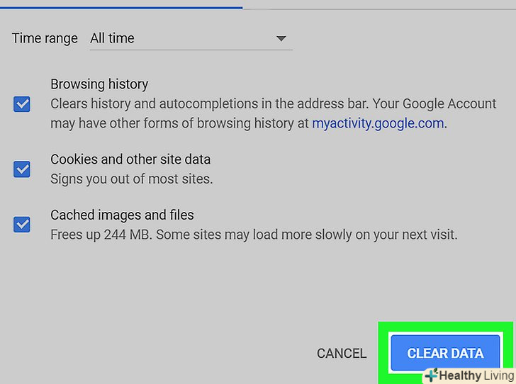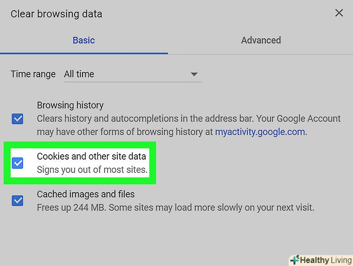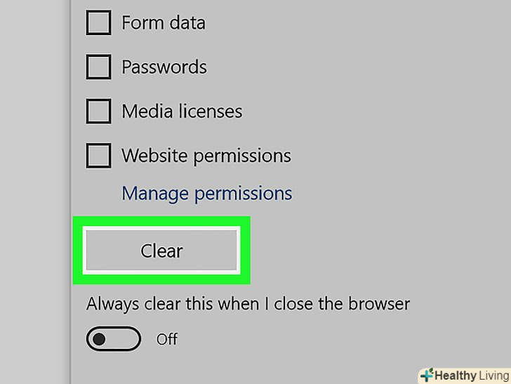 6. НатиснітьОчистити.ця кнопка знаходиться під списком типів даних. Куки будуть видалені.