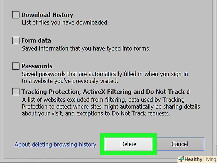 6. Клацніть поВидалити.ця кнопка знаходиться в нижній частині вікна. Куки будуть видалені.