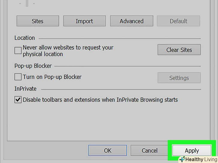 7. НатиснітьOK, щоб закрити вікно «Властивості оглядача».