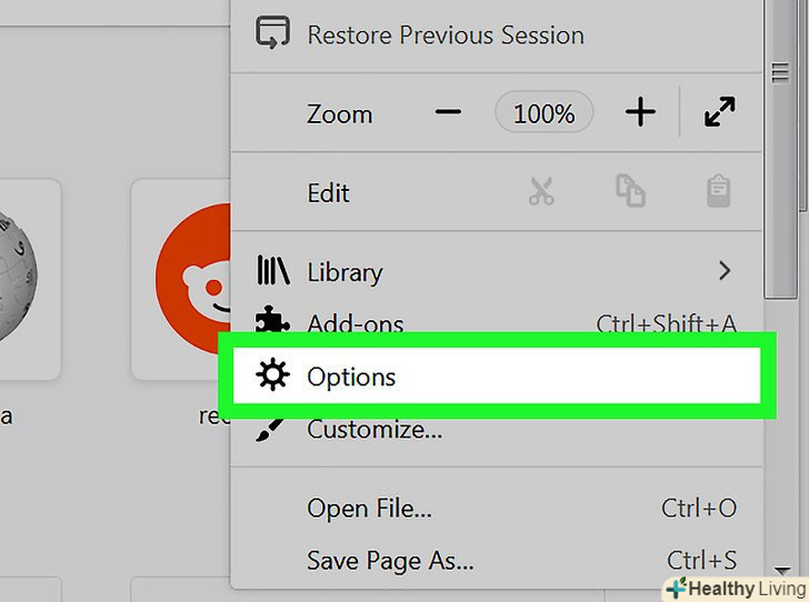 3. НатиснітьПараметри.ця опція знаходиться внизу меню.