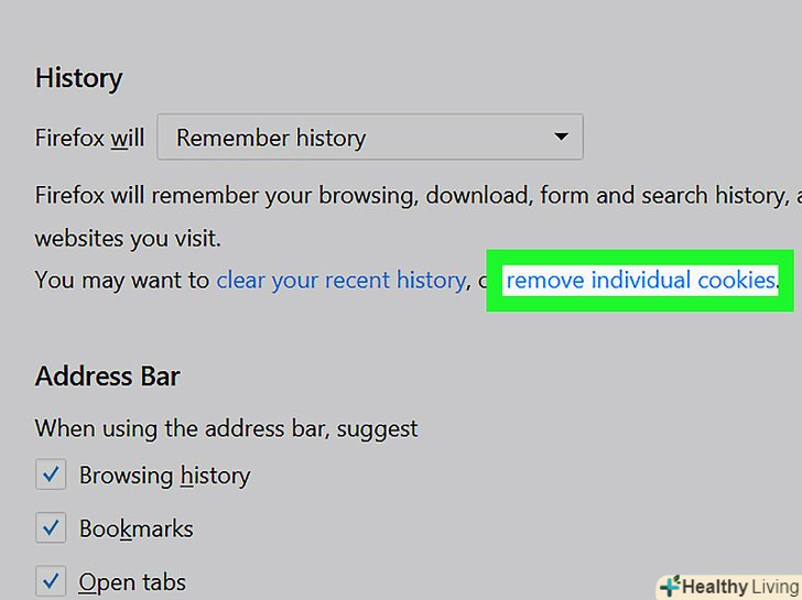 • Якщо ви використовуєте свої налаштування зберігання історії, ви не знайдете посилання "видалити куки" ; замість цього натисніть кнопку "Показати куки" в правій частині сторінки.