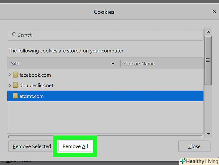 6. Клацніть поВидалити всі.ця опція знаходиться в нижній частині вікна. Куки будуть видалені.