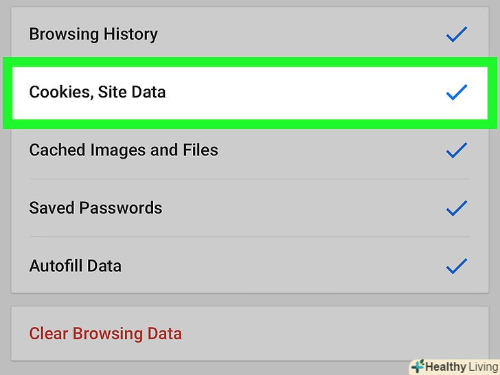 5. Встановіть прапорець біля "Куки і дані веб-сайтів".прапорці У інших опцій можна зняти.