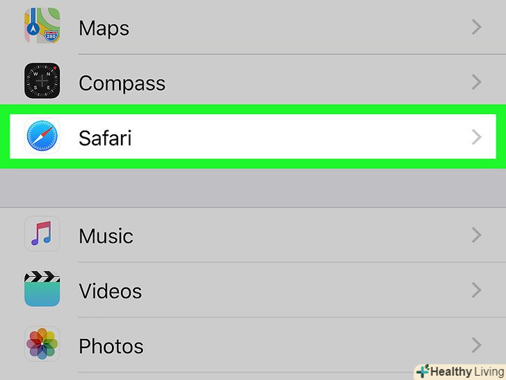 2. Прокрутіть вниз і натиснітьSafari.відкриються Налаштування Safari.