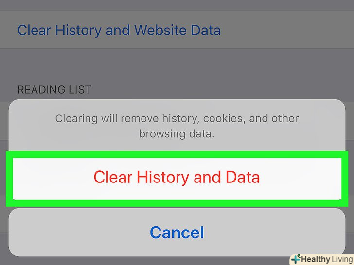 8. ТоркнітьсяВидалити історію, коли з'явиться запит (тільки на iPhone).файли cookie будуть видалені на iPhone.