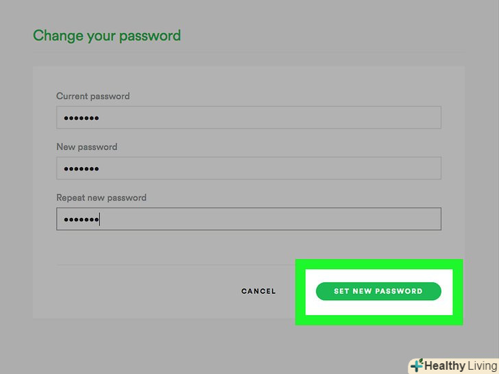 Натисніть наSET NEW PASSWORD (зробити новим паролем). Ваш пароль буде оновлено.
