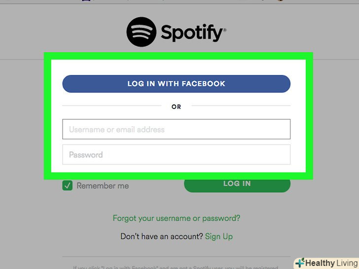 Введіть своє ім'я користувача / адресу електронної пошти та пароль. Facebook і Facebook.- Якщо ви входите в Spotify через Facebook і забули пароль свого аккаунта в даній соціальній мережі, то вам потрібно змінити пароль на сайті Facebook.