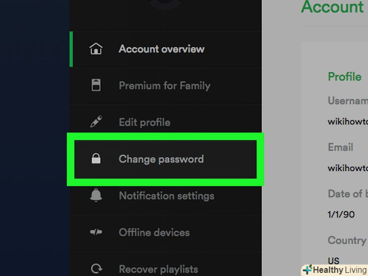 Пройдіть за цією адресою в браузері: https://www.spotify.com.- Пароль не можна змінити в мобільній версії Spotify.