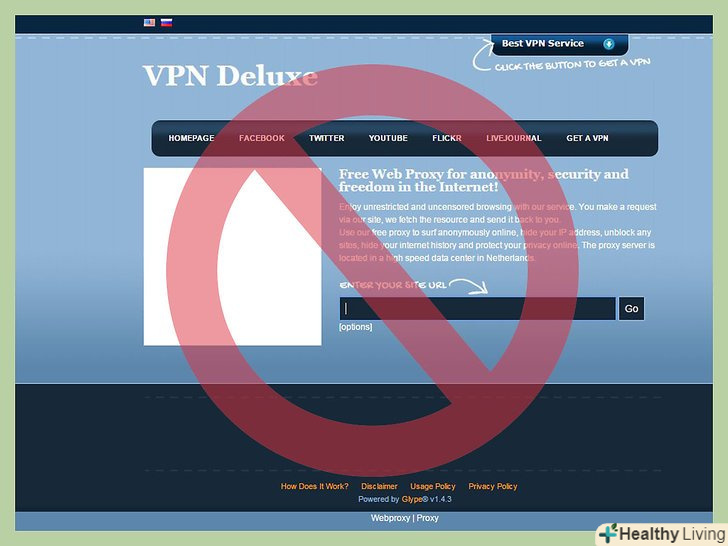 Не переглядайте веб-сторінки через проксі-сервер.Пам'ятайте, що працюючи в Інтернеті через проксі, ви змушені довіритися незнайомим людям, які володіють сервером і налаштовують його. Вони можуть стежити за вашою активністю та зберігати всі дані, які ви надсилаєте / отримуєте через проксі. Також власники проксі можуть зняти захист з веб-сайту, яким Ви користуєтеся, що дозволить їм отримати номер Вашої банківської карти, паролі, інформацію про банківський рахунок та інші конфіденційні дані. Безпечніше використовувати звичайне підключення до Інтернету, так як за нього відповідає Інтернет-провайдер, з яким у вас підписаний договір.- Не користуйтеся сервісами, які приховують IP-адреси — насправді вони є проксі-сервісами.