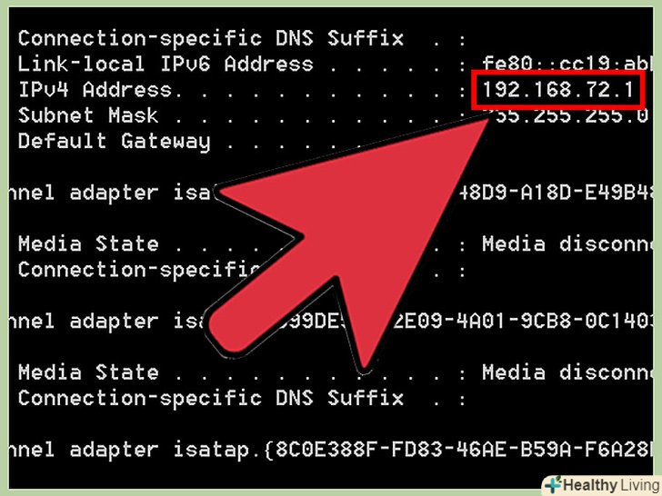 Дізнайтеся приватну IP-адресу.приватна IP-адреса-це адреса пристрою, підключеного до локальної мережі. Кожен пристрій, підключений до локальної мережі, має свою власну IP-адресу. Так маршрутизатор передає певну інформацію відповідному пристрою. Приватна IP-адреса пристрою не відображається в Інтернеті.- Про те, як знайти приватний IP-адресу в Windows, можна прочитати в другому розділі.