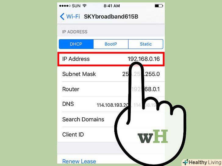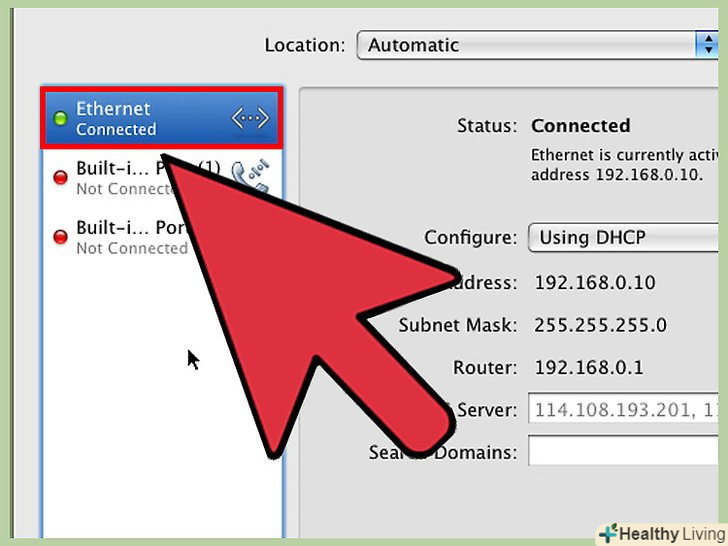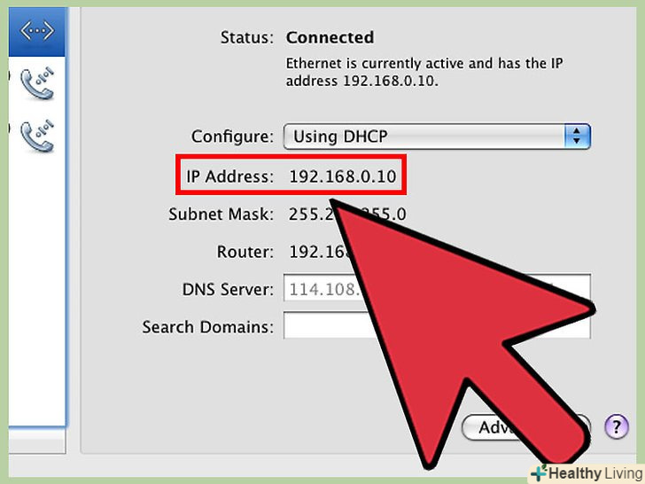 Дізнайтеся приватну IP-адресу.він відобразиться в рядку "IP-адреса".[3]- У старих версіях Mac OS X перейдіть на вкладку "TCP / IP «у верхній частині вікна, щоб знайти рядок»IP-адреса".