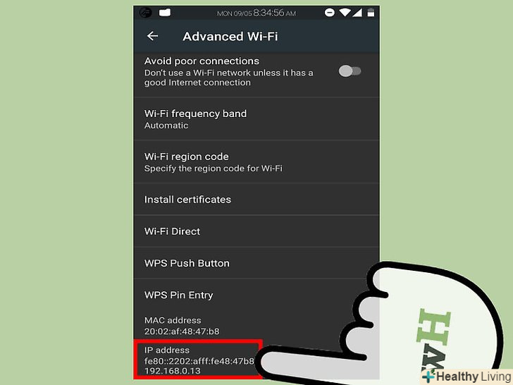 Прокрутіть вниз до рядка "IP-адреса".у ній ви знайдете приватний IP-адресу Android-пристрою.