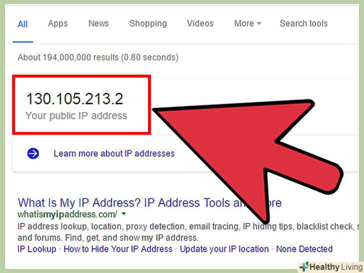 Дізнайтеся свою публічну IP-адресу.ваша публічна IP-адреса відобразиться у верхній частині результатів пошуку Яндекса. Це IP-адреса локальної мережі в Інтернеті.[1]