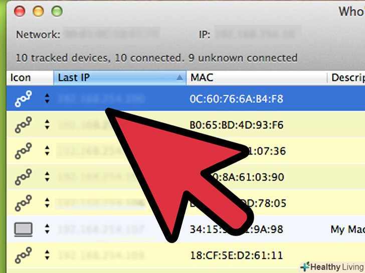 Візьміть папір і ручку, з'ясуйте (як описано вище) адресу основного шлюзу, щоб дізнатися і записати MAC-адреси комп'ютерів/пристроїв, які підключені або будуть підключені до вашої бездротової мережі.регулярно перевіряйте список MAC-адрес, щоб дізнатися, чи немає в ньому невідомих адрес; якщо є, до вашої мережі підключився сторонній користувач. MAC-адреса-це унікальний шістнадцятковий код, який ідентифікує мережеві карти комп'ютерів, підключених через Ethernet-кабелі. Не існує двох однакових MAC-адрес.