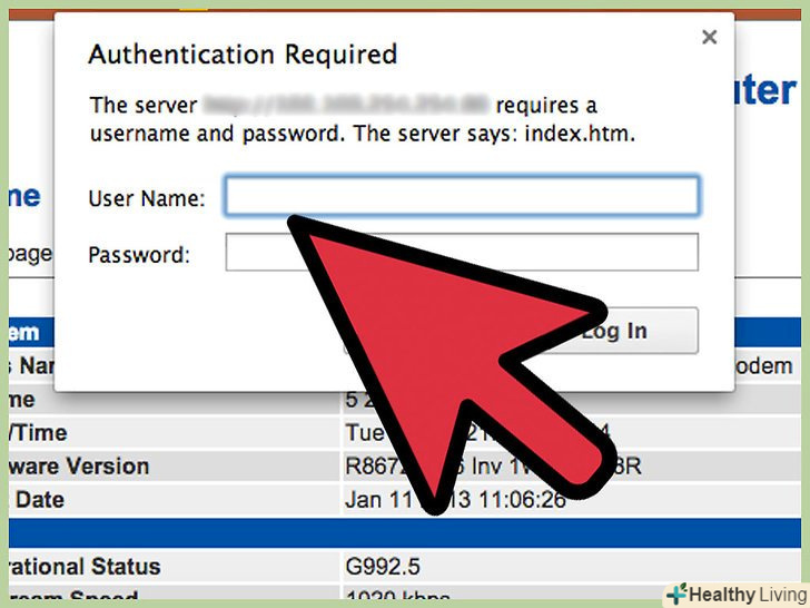 Введіть ім'я користувача та пароль до маршрутизатора.- Для маршрутизаторів Linksys врахованими даними за замовчуванням є: ім'я користувача-відсутній; пароль-admin.