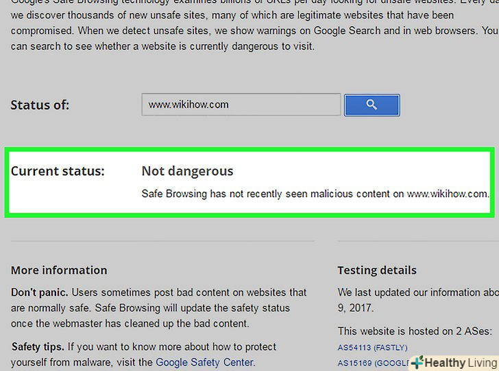 З цієї статті ви дізнаєтеся, як оцінити надійність сайту перед тим, як почати ним користуватися. Крім стандартних заходів безпеки, для перевірки законності того чи іншого сайту можна скористатися «звітом Google про доступність сервісів і даних» або сайтом Better Business Bureau (Бюро з поліпшення ділової практики), якщо вас цікавить надійність підприємств, розташованих в США, Канаді або Мексиці.