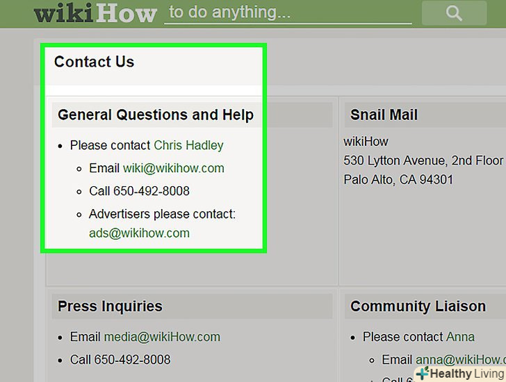 Скористайтеся сторінкою "зворотній зв'язок".більшість сайтів мають сторінку зворотного зв'язку, через яку користувачі можуть надсилати запитання, коментарі та пропозиції власнику сайту. Зателефонуйте або надішліть електронний лист на наданий номер телефону або адресу електронної пошти, щоб переконатися в законності сайту.- Перегорніть в самий низ сайту, щоб знайти сторінку»зворотній зв'язок".