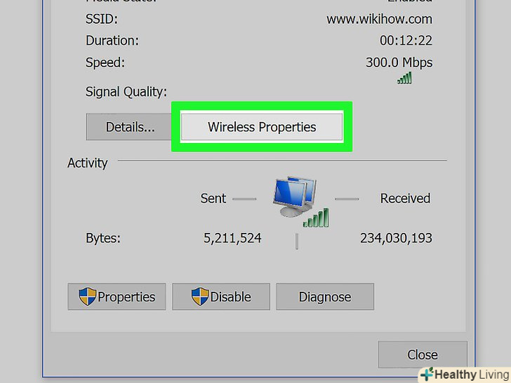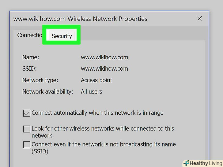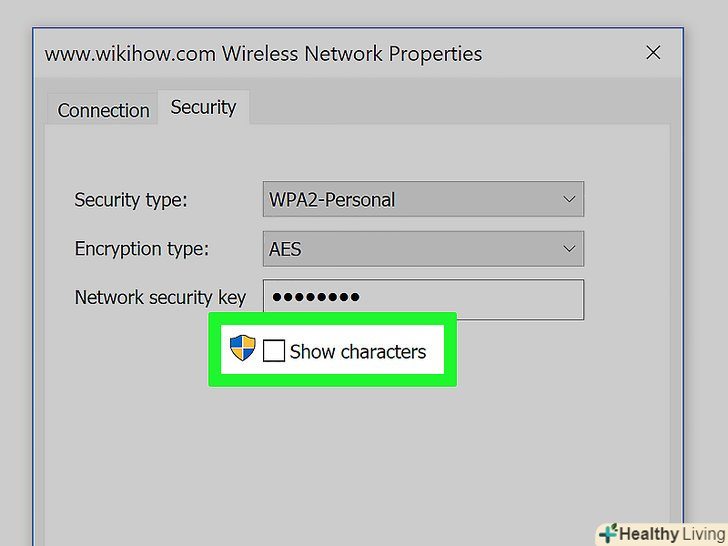 Перейдіть на вкладкуБезпека. Вона знаходиться вгорі вікна. Відкриється сторінка з рядком "Ключ безпеки мережі" (в центрі) — в цьому рядку вказано пароль до бездротової мережі.