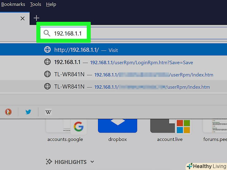 Перейдіть на сторінку конфігурації маршрутизатора.відкрийте веб-браузер і в адресному рядку введіть IP-адресу маршрутизатора.- Можна використовувати практично будь-який браузер.