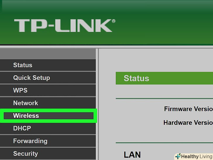 Перейдіть на вкладку "Wi-Fi" або " Wireless "(Бездротова мережа) на сторінці конфігурації.для цього клацніть по ній вгорі сторінки іабо в меню навігації.- Інтерфейс сторінки конфігурації залежить від моделі маршрутизатора, тому вказаний розділ може знаходитися в одному з меню.