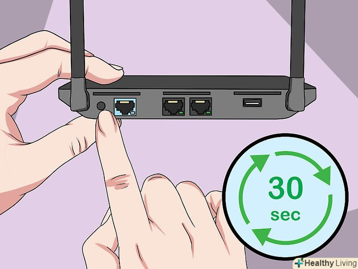Натисніть і утримуйте кнопку "Скидання".утримуйте цю кнопку як мінімум 30 секунд, щоб скинути налаштування.- Коли налаштування будуть скинуті, світлодіоди маршрутизатора почнуть блимати або короткочасно вимкнуться.