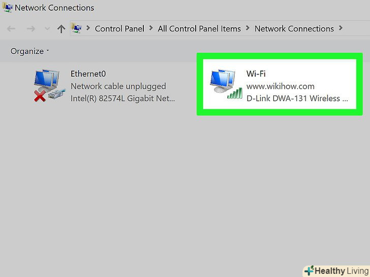 Натисніть на бездротову мережу, до якої ви підключені.вона позначена значком, який виглядає як монітор з зеленими смужками.