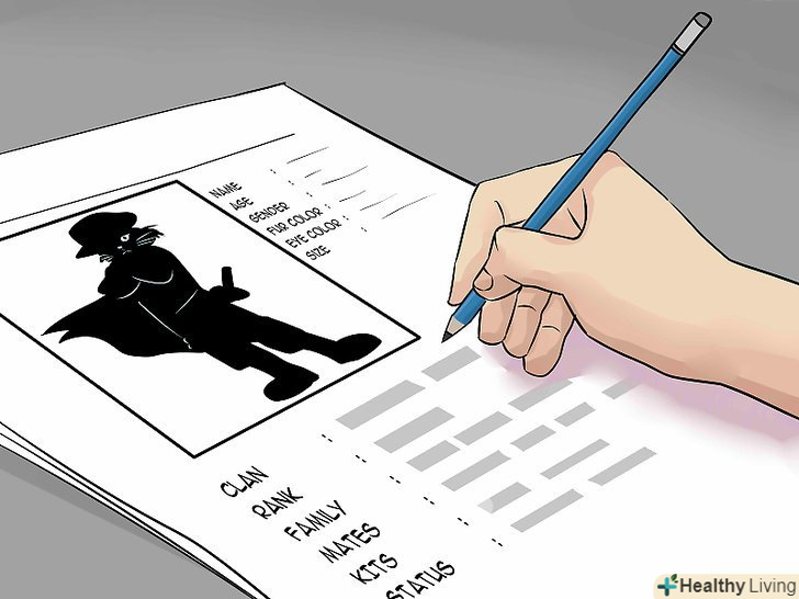 Запишіть будь-яку сім'ю, яка у них може бути, їх другу половину і кошенят (якщо вони є).також включіть їх ранг (якщо вони складаються в племені) або статус (якщо вони бродяги, одинаки, або ще кошенята).