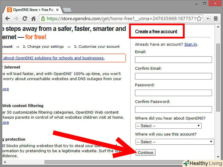 Зареєструйтеся наOpenDNS.якщо ви не хочете, щоб діти дізналися, що ви встановили фільтр, скористайтеся OpenDNS. Він використовується в багатьох школах і робочих місцях.