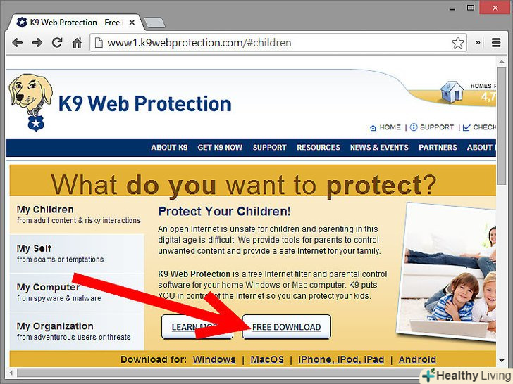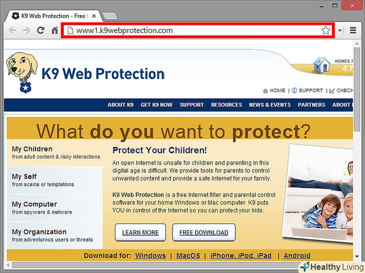 Скачайте програму для установки сімейної безпеки.її потрібно встановити на тому комп'ютері, на якому ви хочете встановити фільтр. Вона буде стежити за тим, щоб ваші діти не змінювали налаштування безпеки, які ви встановите.