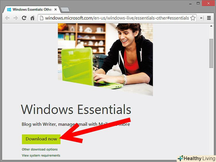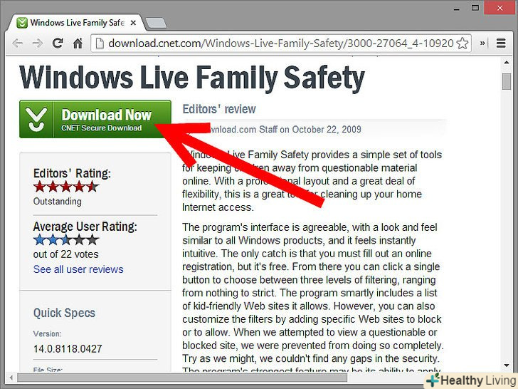 Подивіться, чи не встановлена вже Програма Сімейна безпека (Family Safety).на деяких версіях Windows 7 вона встановлена за замовчуванням. Для перевірки увійдіть в меню Пуск, потім натисніть Програми, потім Windows Live. Якщо програма встановлена, ви побачите в списку назву Windows Live Family Safety.- Якщо програма не встановлена, перейдіть за посиланнямОсновні компоненти Windows і скачайте завантажувальний файл. Натисніть на кнопку Варіанти завантаження, після чого натисніть Завантажити. Дотримуйтесь інструкції, щоб встановити основні компоненти Windows.