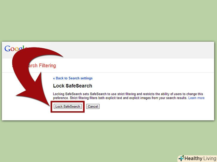 Перейдіть за посиланнямGoogle.com Налаштування пошуку.вгорі ви побачите фільтр Безпечного пошуку. Поставте галочку навпроти "включити безпечний пошук" для того, щоб включити безпечний пошук.- Після цього всі непристойні результати повинні блокуватися при пошуку в Google; будуть фільтруватися навіть результати, де просто згадується слово «секс», а також картинки оголених людей.