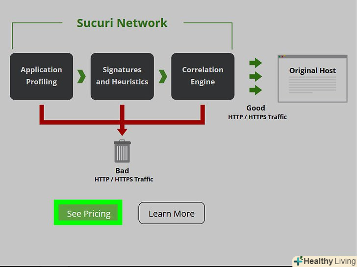 Використовуйте програми для забезпечення безпеки або плагіни.існують різні брандмауери для веб-сайтів, на які можна підписатися і забезпечити постійний захист; також деякі хостинги (наприклад, WordPress) надають плагіни для захисту сайтів. Тому рекомендуємо захистити сайт програмним забезпеченням, як ви захищаєте комп'ютер за допомогою, наприклад, антивіруса.[1]- Sucuri Firewall-відмінний платний брандмауер; безкоштовні брандмауери або плагіни для захисту сайтів є у WordPress, Weebly, Wix та інших служб хостингу.