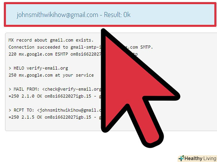 Погляньте на результати перевірки, розташовані під кнопкою "Verify". якщо адреса електронної пошти справжня, тут буде написано " Result: OK».