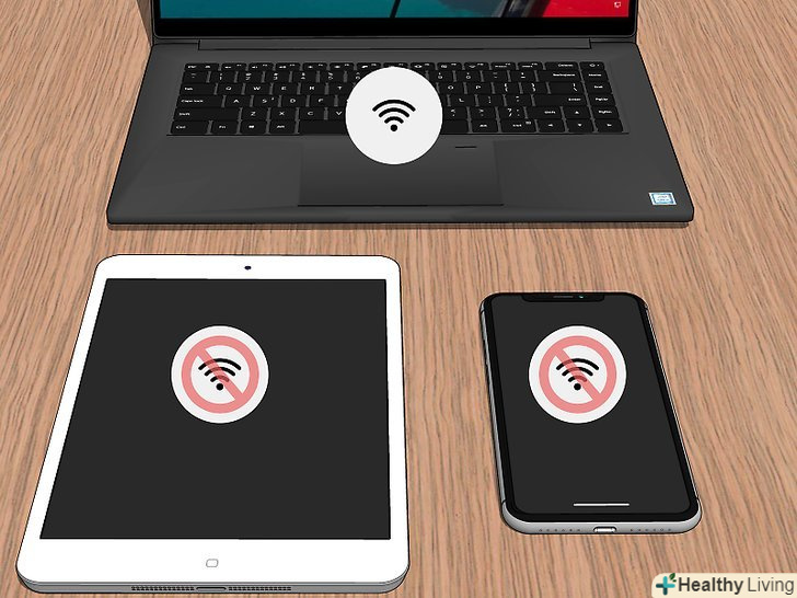 Вимкніть від інтернету всі пристрої, крім комп'ютера. це найпростіший спосіб визначити, чи підключений сторонній пристрій до вашої мережі, тому що будь-які знайдені адреси будуть належати вашому комп'ютеру або сторонньому пристрою.- Якщо деякі пристрої (наприклад, ігрові консолі) підключаються до маршрутизатора за допомогою Ethernet-кабелів, від'єднайте ці кабелі.