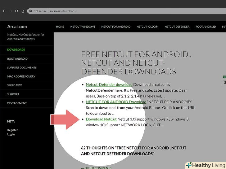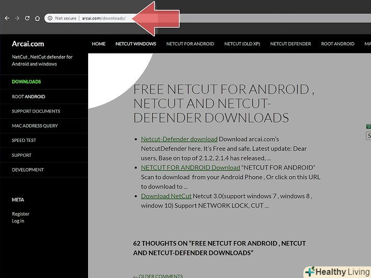 Відкрийте сайт програми NetCut. перейдіть на сторінку http://www.arcai.com/downloads / в браузері.