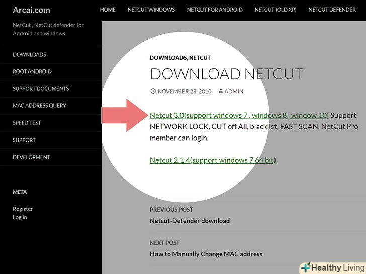 Клацніть по посиланню "Netcut 3.0". вона знаходиться у верхній частині сторінки. Ця версія NetCut оптимізована для Windows 8/10. Інсталяційний файл програми завантажиться на комп'ютер.