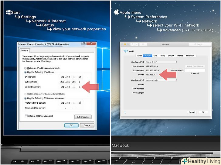 - В Mac OS X відкрийте меню «Apple», натисніть кнопку «Системні налаштування», виберіть «Мережа», клацніть по «Wi-Fi», натисніть «Додатково», перейдіть на вкладку «TCP/IP» і знайдіть рядок «Маршрутизатор» — в ній знаходиться IP-адресу маршрутизатора.