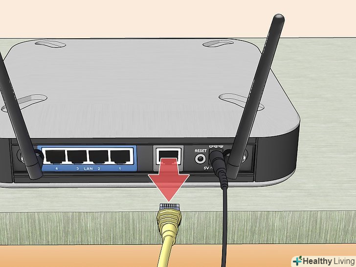 Вимкніть маршрутизатор від модему. для цього від задньої панелі маршрутизатора від'єднайте Ethernet-кабель, який підключений до модему.- Пропустіть цей крок, якщо маршрутизатор і модем є одним пристроєм.