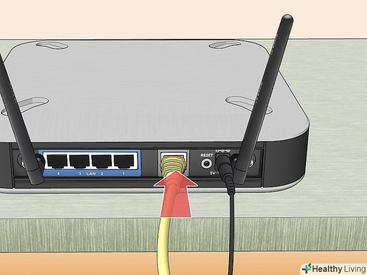 Підключіть маршрутизатор до модему.для цього скористайтеся тим же Ethernet-кабелем.- Пропустіть цей крок, якщо маршрутизатор і модем є одним пристроєм.