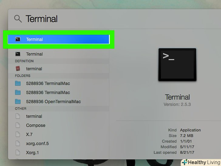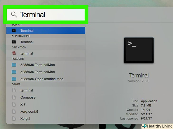 Введітьтермінал в Spotlight.так ви знайдете утиліту»Термінал".