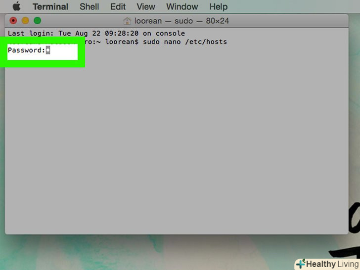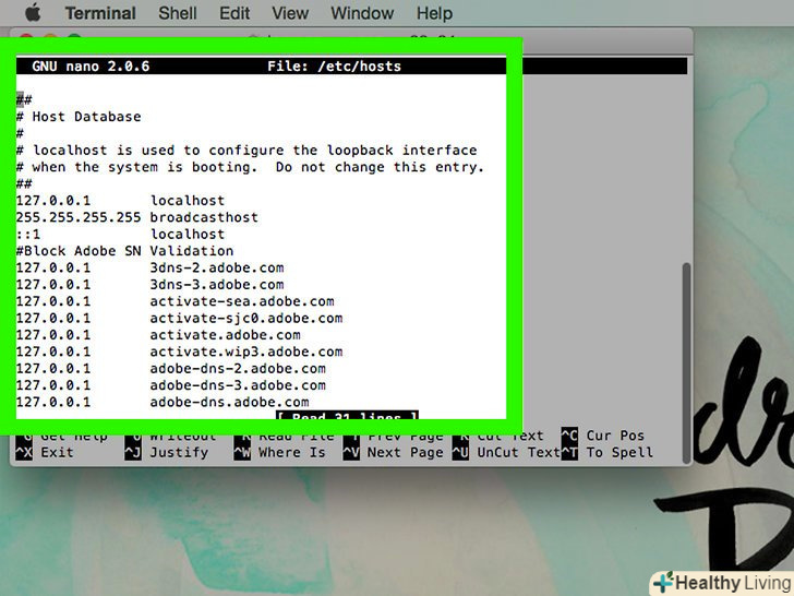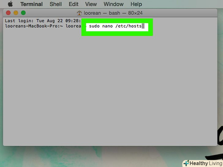 Введітьsudo nano/etc/hostsв терміналі і натисніть ⏎ Return.відкриється файл "hosts", який містить список файлів, до яких можна отримати доступ з будь-якого браузера, включаючи Safari.