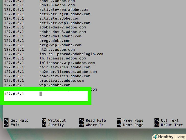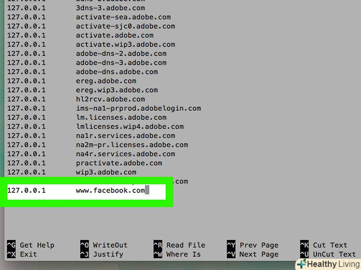 Введіть адресу сайту, який потрібно заблокувати. адреса повинна починатися з www..- Введена рядок буде виглядати приблизно так:127.0.0.1 www.facebook.com.