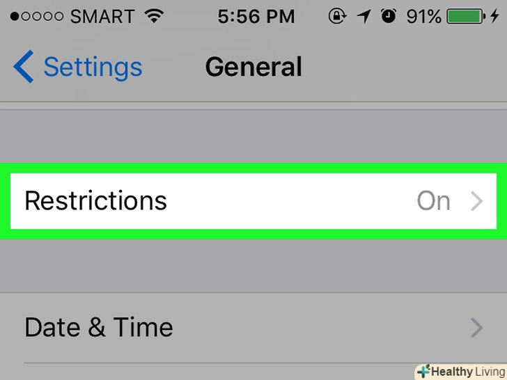 Прокрутіть вниз і натиснітьОбмеження. Ви знайдете цю опцію посередині сторінки.