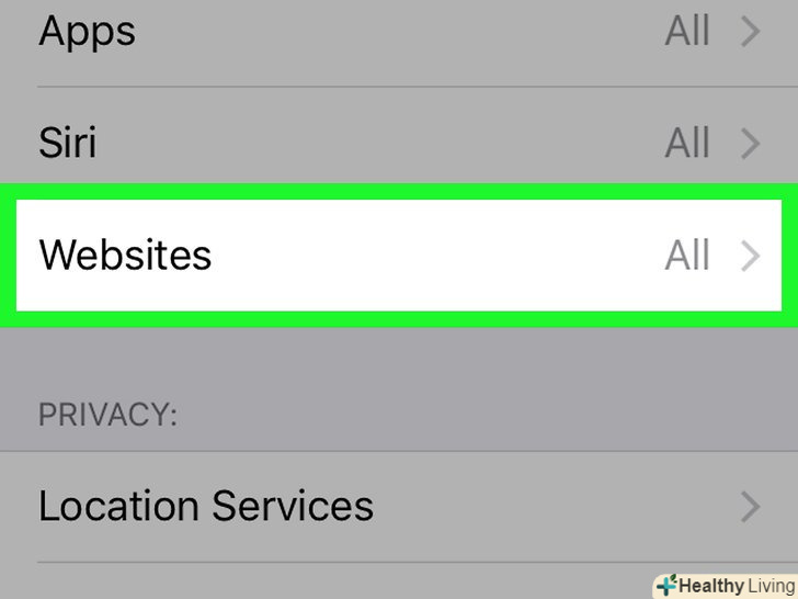 Перейдіть в розділ "дозволений контент"і натиснітьСайти. Ця опція знаходиться приблизно посередині екрану.